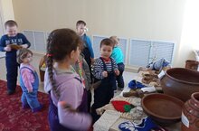 Музе́й - учреждение, занимающееся сбором, изучением, хранением и экспонированием предметов — памятников естественной истории, материальной и духовной культуры. Наши воспитанники посетили сельский музей, который находится внутри библиотеки. Во время экскурсии наши дети познакомились с жизнью, бытом и традициями наших предков, орудиями труда, применяемые для различных хозяйственных целей: рубель, ухват, коромысло, кочерга и деревянной и чугунной посудой. -
