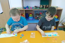 Формирование познавательного интереса у детей дошкольного возраста строится на использовании игрового занимательного материала. Дидактическая игра «Продолжи ряд» очень интересная логическая игра, которая подойдет детям уже с 2-3 летнего возраста. Данная игра направлена на развитие логического мышления, внимания, наблюдательности, восприятия цвета. Игра «Подбери по цвету» предназначена для индивидуальной, совместной работы и самостоятельной деятельности ребенка. Дети путем логического мышления продолжали ряды геометрических фигур по образцу. -