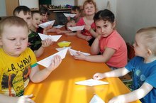 На занятии образовательной деятельности по конструированию изготавливали маленький кораблик из бумаги. Кораблики получились ровные, красивые. Поэтапно объясняла и показала, как из бумаги сделать кораблики. Узнали о свойствах кораблика, рассказали, что должен держаться на воде и не тонуть. Дети научились к аккуратности, умению бережно и экономно использовать материал, содержать в порядке рабочее место. -