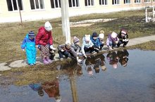 Отправляли свои кораблики в волшебное плаванье по весенним ручьям!Я в весенний ручеёк,Запущу кораблик,Пусть к реке большой плывёт,Весело сигналит.На борту его – Вена,Ветерок гонит,Полон трюм его тепла,Вдаль волна уносит. -