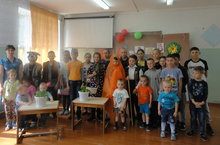 Мәктәп укучылары безгә кечкенә генә театр уйнап күрсәттеләр. Без бик кызыксынып карадык. Алар белә бергә җырлап биедек.