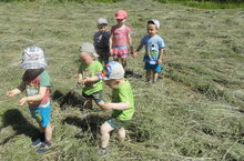 Без яңадан бакчабыз бинасының тирәсенә чыктык. Инде печәннәр чабылган, кипкән, җыярга вакыт җиткән. Без чәчәк букетлары ясаганда кулланырга дигән максат белән кыры үләннәрне җыеп алырга булдык.