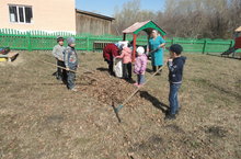 Кар эрү белән яшелләндерү, чистарту эшләре башлана. Без дә бакча тирәсен. уен мәйданчыгын көзге яфраклардан чистарттык.