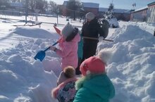 Сегодня сотрудники, родители, воспитанники нашего детского сада собрались на расчистку от снежных заносов игровой площадки ДОУ.