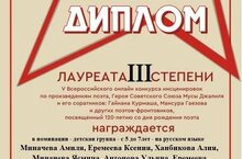 Грамотами награждены наши воспитанники детского сада за участие в конкурсе чтецов "Читаем Джалиля", посвященного 120-летиюсо дня рождения татарского писателя Мусы Джалиля.Молодцы!