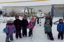 Конечно же, основную работу по изготовлению снеговика взяли на себя воспитатели, но маленькие помощники были всегда рядом. Сначала мы с ребятами слепили из снега маленькие комочки, а затем катали их по остальному снегу, чтобы комки росли и увеличивались в размере. Поскольку снега выпало еще не очень много, дети лопатками приносили снег и руками мы продолжали формировать снежные колобки. Все дети были заинтересованы, каждый стремился даже горсточкой снега сделать нашего снеговика самым большим и красивым. -
