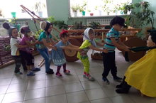 Сегодня мы с детьми поиграли в игру- инсценировку по сказке «Репка». Такие игры активизируют словарный запас детей и способствуют его обогащению. Формируют у детей умение внимательно слушать, они учатся играть роль персонажа сказки с помощью взрослого, закрепляется знание о желтом и зелёном цвете, воспитывается любовь и интерес к русским народным сказкам. Дети учатся выполнять имитационные движения в соответствии с текстом, совершенствуется общая и мелкая моторика рук.