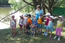 Сегодня мы с детьми сходили на водоём. Цель данной экскурсии: дать детям представление о том, что река – это сообщество водных обитателей: растений и животных, приспособившихся к жизни в воде, о том, что на берегу растут растения, которым требуется много влаги; живут животные, образ жизни которых тоже связан с водой; и все они образуют одну цепочку.