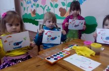 В ходе занятия учим детей различать элементы дымковской росписи, рисовать кружочки, точки, у них развивается творческая активность, внимание, умение различать цвета. Стараемся вызвать радость у детей от созданного ими образа – дымковской уточки. Также воспитывается интерес к русскому народному искусству.