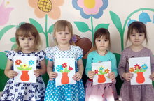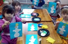Сегодня мы провели занятие по аппликации. На данном занятии закрепили знания детей об окружающем мире: какое сейчас время года, тепло или холодно на улице, есть ли на улице снег, сосульки, из чего они состоят (из воды), познакомили детей с различными геометрическими фигурами: круги по величине и по форме и по очередности наклеивать круги на картон (большой, средний, маленький), учили заранее выкладывать на листке приготовленные детали, и только потом наклеивать полученное изображение. развиваем у детей чувство воображения, внимание, аккуратность, ответственность, вызвать у детей интерес к предстоящей работе, радость от созданного ими шедевра (аппликации).