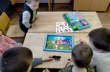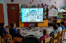 Буген без балалар белэн авыл китапханэсенэ сэяхэт иттек. Китапханэче туган тел елы кысаларында безгэ Габдулла Тукай шигырлэренэ багышланган мультфильм курсэтте.