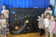 В подготовительной группе провели просмотр презентации День космонавтики и познавательную игру «Путешествие в космос"