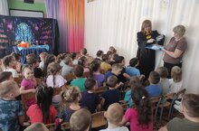 У нас сегодня в гостях научное шоу из Ульяновска "Лаборатория кота ученого"- театрализованное представление с физико-химическими опытами для дошкольников. В программе научный сотрудник Лариса Ивановна использует только безопасные для показа опыты, не имеющие резких запахов, отсутствует применение огня и нагревательных приборов. Ребятам представление очень понравилось, и по отзывам - некоторые опыты обязательно попробуют дома с родителями.