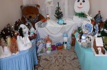Разнообразные ёлочки, забавные снеговики, заснеженные домики, грациозный белоснежный олень и символ года – всё сделано руками детей и родителей.