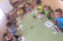 Воспитанники 1 младшей группы рисуют осенние листочки.