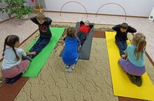 В качестве испытаний, маленьким школьникам были предложены: челночный бег 3х10 метров, наклон из положения стоя на гимнастической скамье, сгибание и разгибание рук в упоре лежа, прыжок в длину с места толчком двумя ногами и поднимание туловища из положения лежа за 30 секунд и 1 минуту.