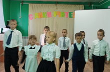 Сегодня ученики нашей школы поздравили своих учителей и воспитателя с днём учителя.