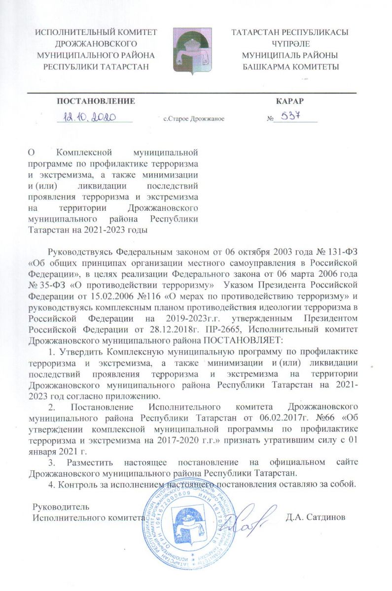 Программа АТК Дрожжановского муниципального района РТ на 2021-2023 годы