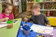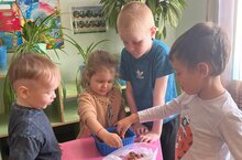 Дети познакомились с полезными свойствами лука и решили выращивать зелёные пёрышки самостоятельно. Ребята сажали лук, а затем аккуратно его поливали.