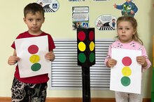 Закрепили знание цветов светофора, учились наклеивать его «глазки» в правильном порядке и аккуратно