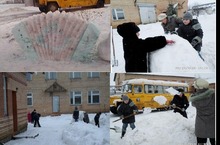 Зима в этом году пришла с обильным снегопадом. Учащиеся нашей школы этим поспешили воспользоваться. Школьники построили поблизости школы снежные фигуры.