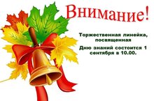 ·1 сентября пройдёт торжественная линейка для 1-го и 9-го классов: на территории школьного двора, с 10.00;