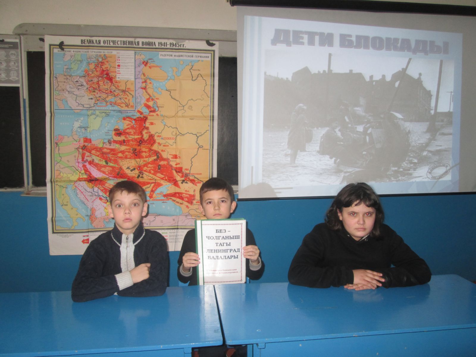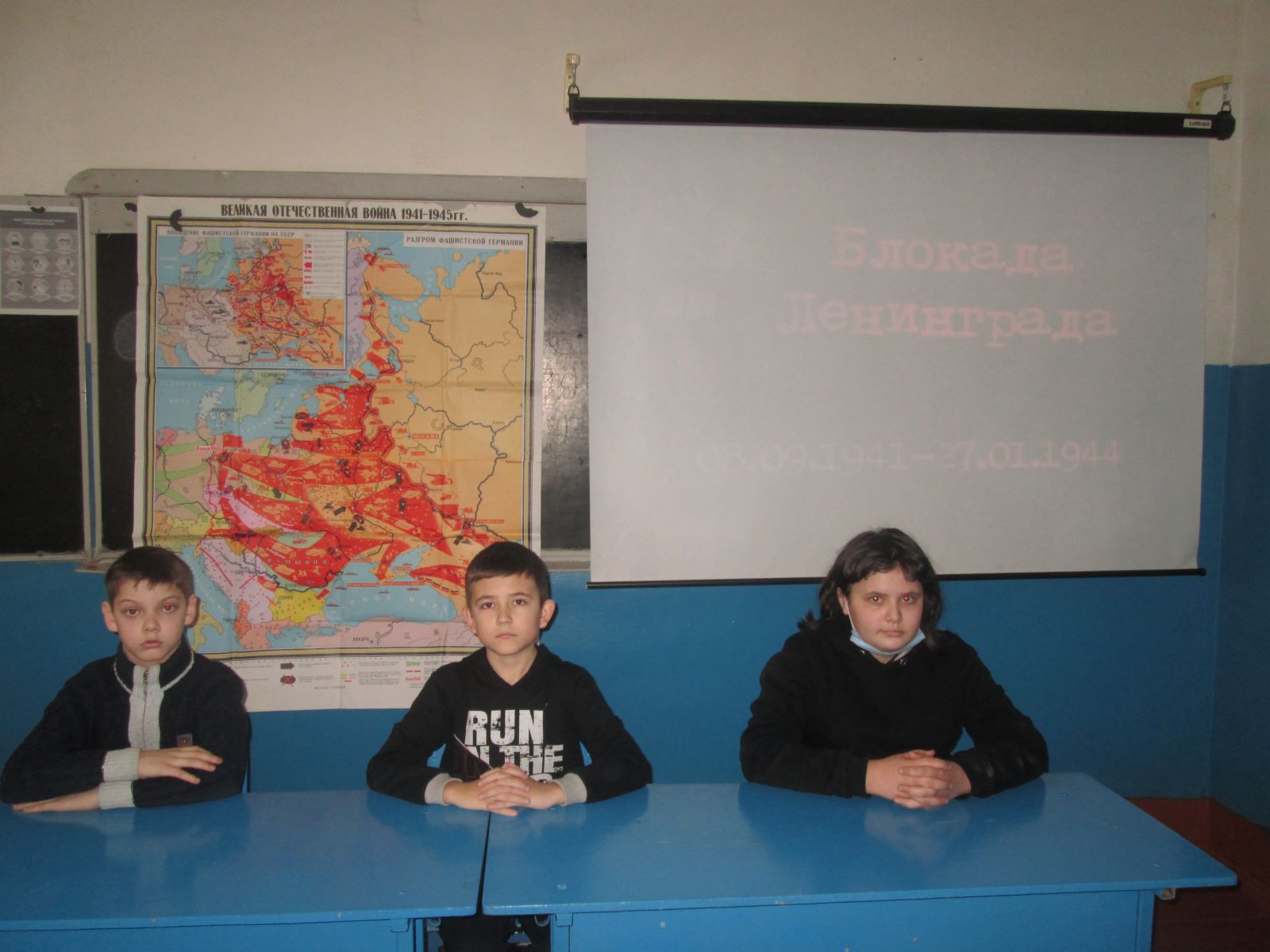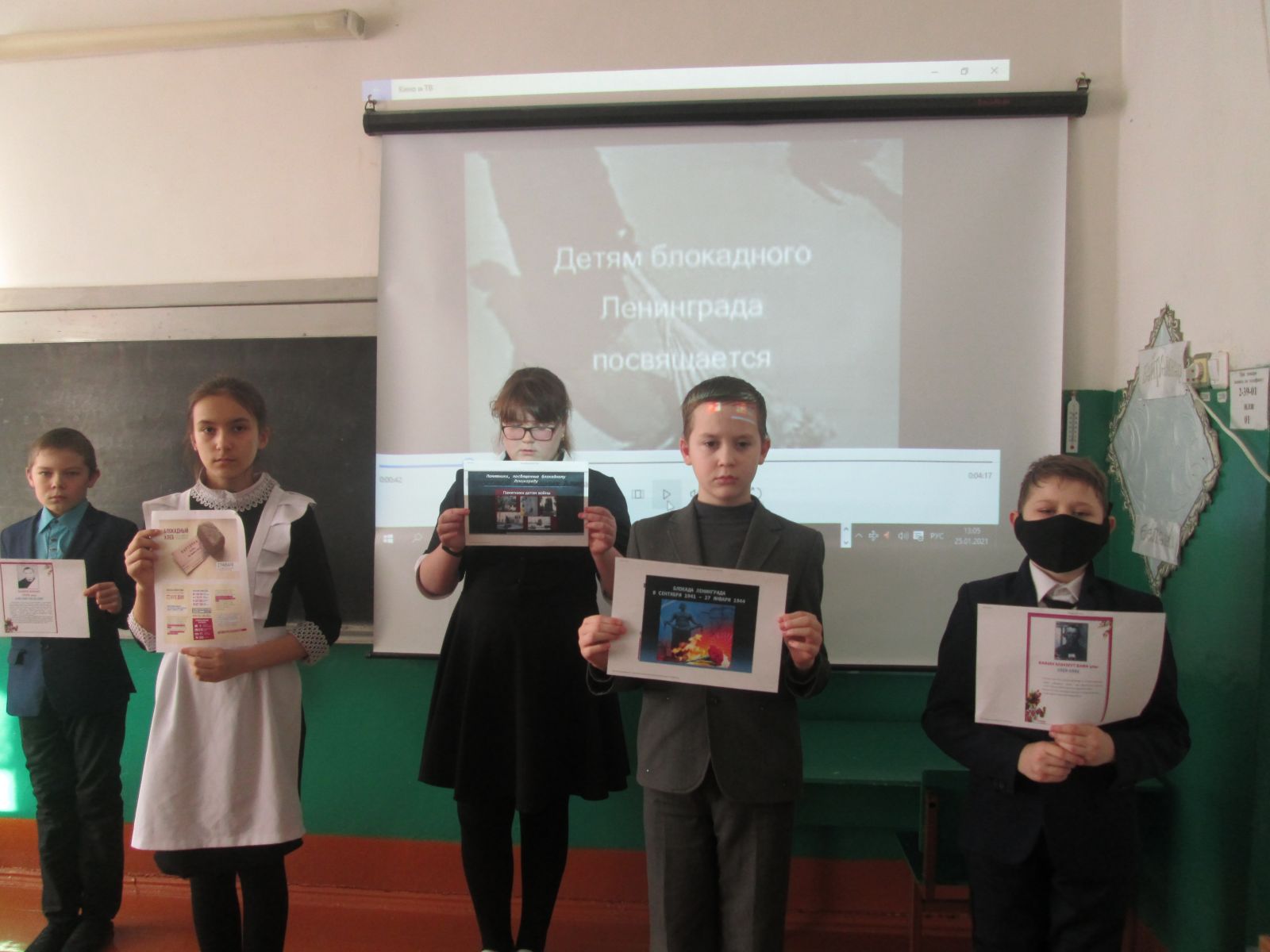 25 января во всех классах школы прошли классные часы «День снятия блокады Ленинграда». Классные часы начались со стихов, посвященных Великой Отечественной войне, которые заранее были розданы детям. Дети рассказывали стихи выразительно и грустно. Далее классные руководители рассказали о тех страшных днях в Ленинграде. Рассказ сопровождался показом презентации. Особенно детей затронул рассказ о маленькой девочке, о Тане Савичевой у которой сначала погибла вся семья, а потом и сама она тоже умерла от истощения.