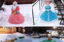 Каждый год на Новый Год каждый класс делает снежные фигурки возле школы,которые долгое время радуют нас своей красотой и оригинальностью,ведь каждый год,каждый класс старается делать что-то новое интересное.