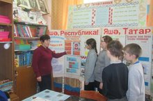 В рамках проведения мероприятий к празднованию "100-летия образования ТАССР" обучающиеся 5 класса посетили школьную библиотеку, где организована книжная выставка и стенд ко «100 –летию образования ТАССР». Учитель родного языка и литературы Биктудина Ф.М. провела экскурсию по следам истории Республики Татарстан.