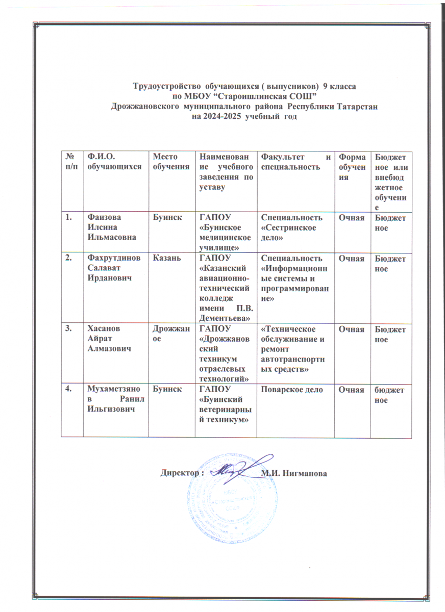 Муниципальное бюджетное общеобразовательное учреждение "Староишлинская средняя общеобразовательная школа" Дрожжановского муниципального района Республики Татарстан
