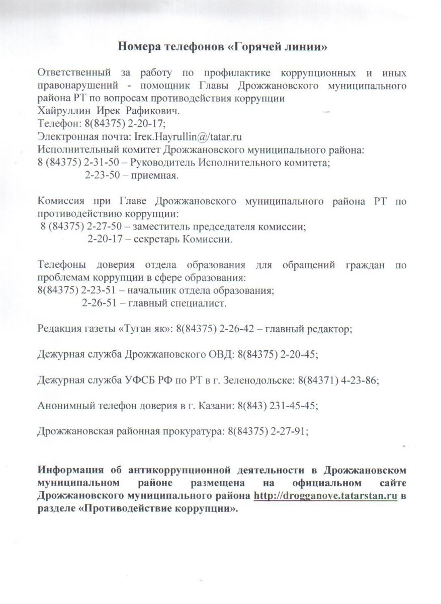 Состав Комиссии при Главе Дрожжановского муниципального района РТ по противодействию коррупции