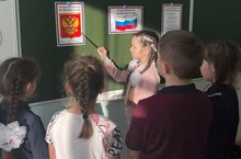 Занятие проводилось с целью ознакомления учащихся с величием нашей страны, формирования у них уважительного отношения к государственным символам страны; развития стремления изучать историю нашей страны; воспитания любви к Родине, патриотических чувств, гордости за свою Родину. Из рассказа учителей дети узнали, что такое государственные символы, что они означают и почему каждое государство имеет свой герб, флаг, гимн. Рассказ сопровождался видео презентацией, в ходе которой дети подробнее познакомились с символикой нашей страны, а также узнали, что есть ещё и неофициальные символы, олицетворяющие нашу страну. Пассивных детей среди участников не было. Рассказ о гербе и флаге заинтересовал ребят. Вспомнили дети и о главной песне России и с чувством патриотизма исполнили гимн Российской Федерации в конце занятия.