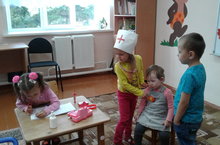 Воспитанники детского сада очень любят играть в сюжетно-ролевые игры. Одна из самых любимых игр ребят – «Больница». Дети сами договариваются кто кем будет: врач, медсестра и пациенты. Дети выполняют соответствующие трудовые действия: врач слушает пациента, назначает процедуры, медсестра всё записывает в карту. Воспитатель Арисова М.А. детям подсказывает и помогает во время игры. Дети играют весело и дружно.