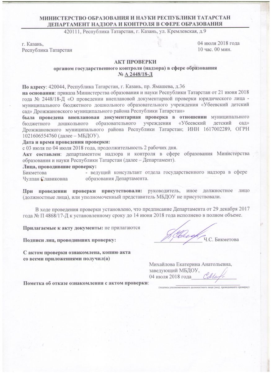Акт прверки органом государственного контроля (надзора) в сфере образования № А 2448/18-Д