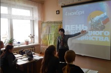 День народного единства. 05.11.2013 В канун праздника Дня народного единства, 4 ноября, в начальных классах прошли беседы, посвященные истории этого праздника, историческим событиям 1612 года в форме презентации. Учителя начальных классов познакомили детей с историей возникновения этого праздника. Шел разговор о народных героях Минине и Пожарском, беседа «Что мы празднуем 4 ноября?».На уроках истории и географии ребята говорили о героическом подвиге Козьмы Минина и Дмитрия Пожарского. В школьной библиотеке работала выставка на тему «Во славу Отечества».