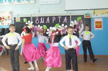 7 марта в начальном звене прошло мероприятие «Мама – солнышко моё!», посвящённое Международному женскому дню под руководством Сердцевой Л.П.. К этому дню дети готовились заранее. Они приготовили для своих мам подарки, сделанные своими руками. Класс, где проходило мероприятие, был празднично украшен плакатами с высказываниями о маме, сочинениями и рисунками «Моя мама – лучше всех!». На празднике присутствовало много гостей – мамы и бабушки наших учеников.