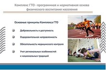 Зачем нужен комплекс ГТО? Целями ВФСК ГТО являются укрепление здоровья, гармоничное и всестороннее развитие личности, воспитание патриотизма. Задачами Всероссийского физкультурно-спортивного комплекса являются: а) увеличение числа граждан, систематически занимающихся физической культурой и спортом в Российской Федерации; б) повышение уровня физической подготовленности и продолжительности жизни граждан Российской Федерации; в) формирование у населения осознанных потребностей в систематических занятиях физической культурой и спортом, физическое самосовершенствование и ведение здорового образа жизни; г) повышение общего уровня знаний населения о средствах, методах и формах организации самостоятельных занятий, в том числе с использованием современных информационных технологий; д) модернизация системы физического воспитания и системы развития массового, детско-юношеского, школьного и студенческого спорта в образовательных организациях, в том числе путем увеличения количества спортивных клубов. ПРИНЦИПЫ ВНЕДРЕНИЯ ВФСК ГТО Всероссийский физкультурно-спортивный комплекс основывается на следующих принципах: а) добровольность и доступность; б) оздоровительная и личностно ориентированная направленность; в) обязательность медицинского контроля; г) учет региональных особенностей и национальных традиций.