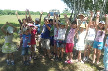Сегодня ребята вместе с воспитателем ездили в с.Ст.Дрожжаное. Весело провели день: купались в бассейне, посетили районный музей, прогулялись по Парку Выпускников. Усталые, но довольные и радостные они вернулись к себе в лагерь.