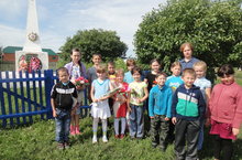 В этот день воспитанники и педагоги пришкольного лагеря «Солнышко» почтили память погибших в Великой Отечественной войне "минутой молчания" с возложением цветов к памятнику.