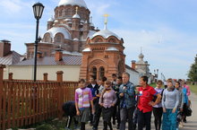 Воспитанники пришкольного лагеря «Солнышко» из отряда «Тропинка православия» (победитель конкурса «Православная инициатива 2013-2014 г.) посетили Остров – Град Свияжск и Раифский монастырь. (Под руководством воспитателей Куракиной Н.Н. и Сердцевой Е.В.)На острове дети смогли ознакомиться с памятниками архитектуры 16-17 века, почувствовать атмосферу средних веков. Экскурсовод Павел показал ребятам старинные фрески в реставрируемом храме, также мы побывали в одном из самых старинных деревянных храмов в России сохранившимся на острове Свияжске. Ребята с интересом посетили музей острова, где им на интерактивной карте продемонстрировали происхождение острова, его историю. Все желающие смогли купить сувениры, поделки, а так же попробовать себя в старинных ремеслах.В Раифском монастыре, не было ощущения старины, но было величие красивых храмов с золотыми куполами. Ребята восхищались красотой и убранством храмов, росписью. Прекрасные цветники украшают монастырский двор, все цветет и радует глаз. Все смогли попить воды из святого источника, а так же взять её с собой на дорогу. Наше путешествие было организовано при поддержке Отдела образования. Детей в пути сопровождала фельдшер ФАПа Трофимова Г. Поездка понравилась всем без исключения. Мы благодарим всех, кто помог нам в её организации! -