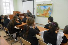 В рамках недели патриотических знаний, перед учащимися школы выступили члены лекторской группы Совета ветеранов ЕМР Сахаров Ф.Д. и Зарипов З. Р.