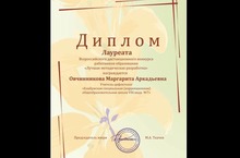 Поздравляем Овчинникову Маргариту Аркадьевну, лауреата Всероссийского дистанционного конкурса "Лучшая методическая разработка", организованного Центром педагогического мастерства "Новые идеи".