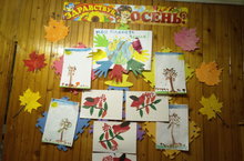 По плану проекта "Осень золотая" ,мы оформляем стенд детских поделок и рисунков "Здравствуй, Осень!