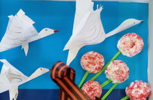 Помните,как мы с ребятами делали сначало оригами журавлей,потом гвоздику из салфеток,затем победные ленты? И ват,что у нас получилось! Эти картины мы будем дарить нашим ветеранам!