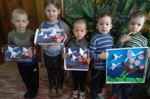 А пока всеми нашими работами к Юбилею Победы мы оформили стенд "Юбилею Победы Посвящается",постоянно пополняя его своими работами.