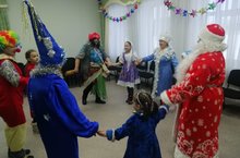Сегодня воспитанники детского сада и гости пришли нарядные, весёлые в предвкушении праздника. Их надежды оправдались.Все взрослые , участвовавшие в новогоднем представлении ( им пришлось перевоплотиться в Зиму, Бабу Ягу, Марфушечку, Звездочёта, Деда Мороза), проявили себя хорошими артистами. С самого начала праздника сказочные герои увлекли детей в волшебный мир сказки. Замечательная Снегурочка (Настенька Шимановская) удивила всех своей игрой и исполнением песни. Новые хороводные песни, стишки, игры, подарки - получился в общем настоящий праздник.