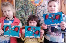 Пластилинография"Снегири" Пластилиннан "кар бөртекләре" 01.02.2019 Под окном рябины куст костром горит. Близится морозный вечер ясный. День к закату. Вдруг слетелись снегири, Чтоб отведать спелых ягод красных.