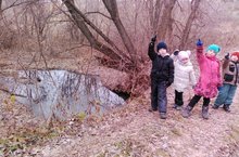 Экскурсия к водоему. 27.11.2017 Река замерзать не хотела, она ворочалась в русле, пыхтела, билась о берег волной, расцветала неземной синевой.... А однажды загляделась на солнце сквозь ледяное оконце, и не заметила, как Мороз её в зиму в объятьях унёс.