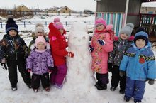 Сегодня с воспитанниками детского сада лепили снеговика.
