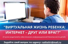 19 января 2018 г. в 12.00 состоится Республиканское родительское интернет собрание "Виртуальная жизнь ребенка: интернет - друг или враг?". Онлайн-трансляция состоится на сайте киу.рф